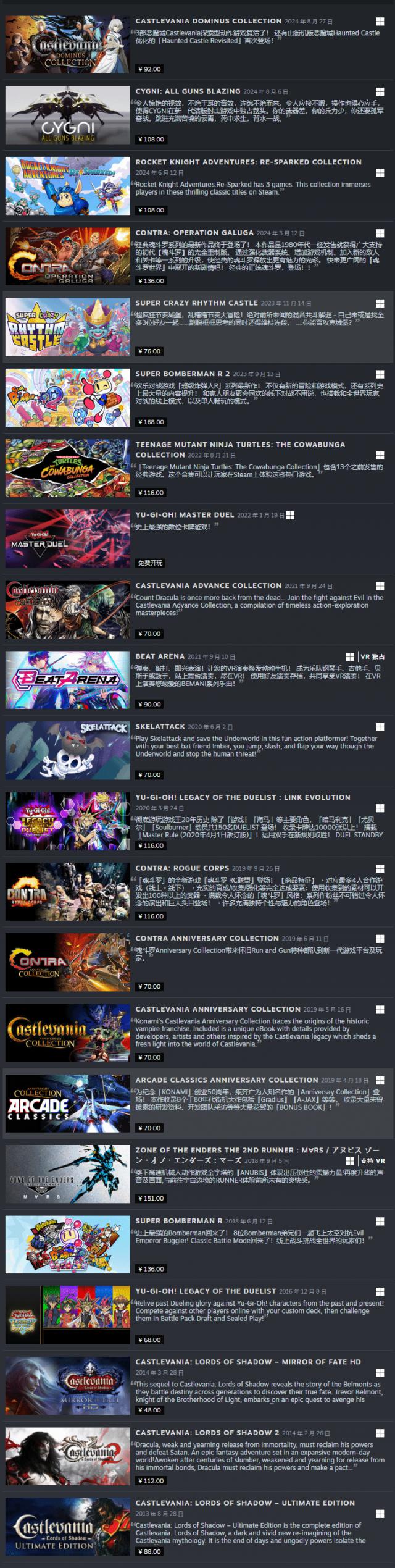 在Steam国区,科乐美再次解禁了各种游戏,包括《游戏王:决斗者遗产》等。