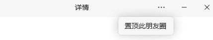 和微信移动终端一样,微信 PC 端在 4.0.2 测试版还增加了朋友圈的顶部功能,点击“朋友圈详情” ··· ",可以看到"置顶这个朋友圈"选项。