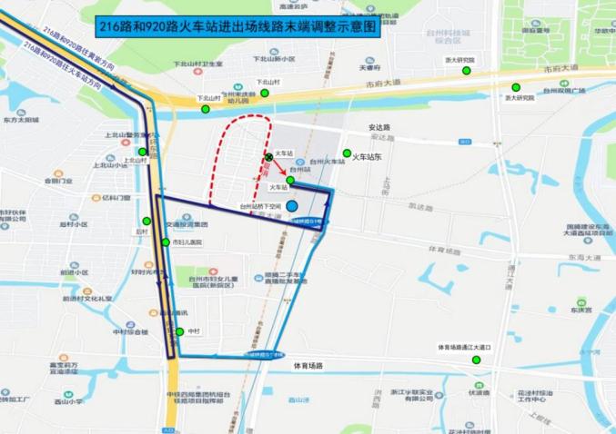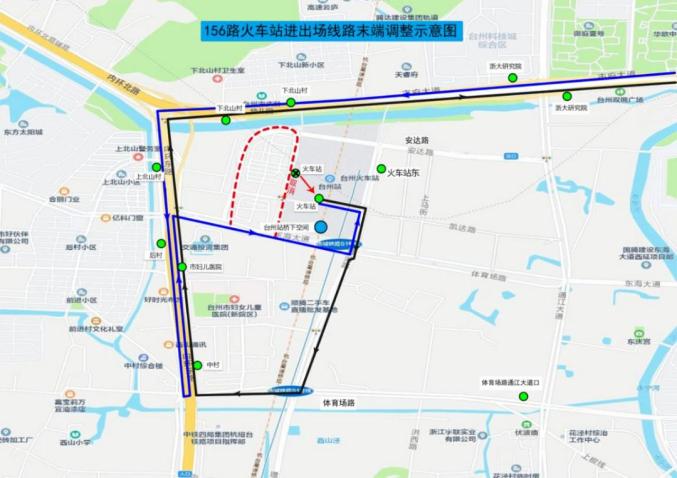 台州火车站公交枢纽站新场站由体育场路、景湖路调整。