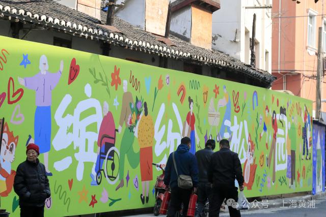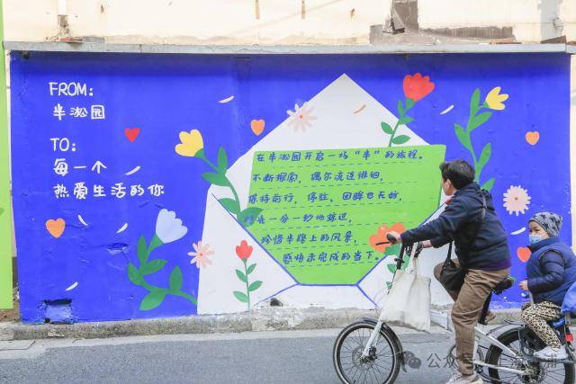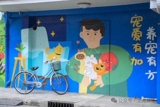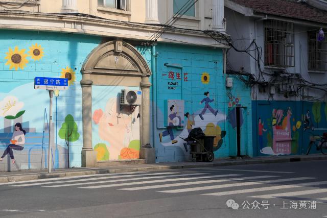 踏上徽宁路,五颜六色的墙画让原本平淡的街道焕发青春,各种卡通人物天真无邪,“一路开花”“养宠有策”“每一个热爱生活的你”...墙上写着有趣的对话,让人忍不住停下来细细品味。