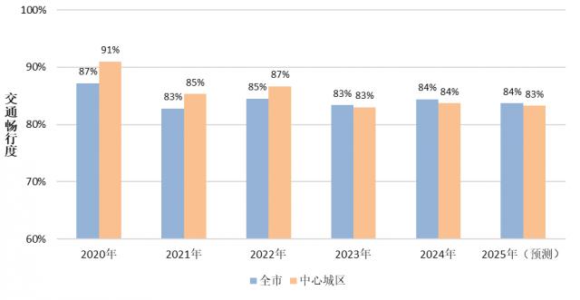 过去五年(2020 年 -2024 2008年)深圳春节假期期间,全市公路交通运行整体处于畅通状态。预计今年春节假期,路网整体交通流畅度为 84%,处于畅通状态。