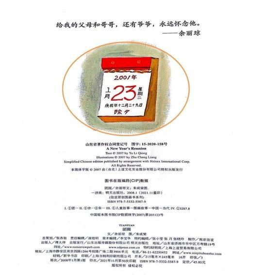 (3)阅读版权页面:这个故事发生的时间是什么时候?-除夕夜。您在哪里看到的?