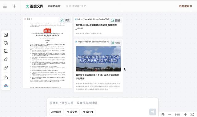 从这个角度来看,从私域的百度网盘,到公域的百度文库,再到更广泛的全网内容,自由画板打开的,不仅仅是我们 AI 互动的方式,更是通向更广阔内容空间的大门。
