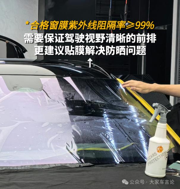 但是如果是前挡和前窗,为了驾驶视线清晰,更建议通过贴窗膜来提高防晒能力。