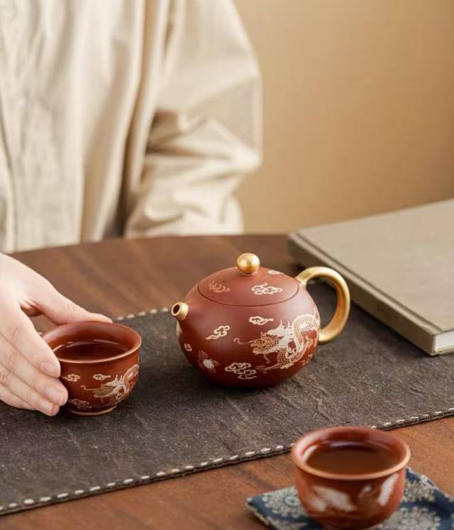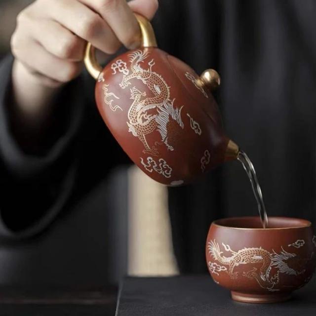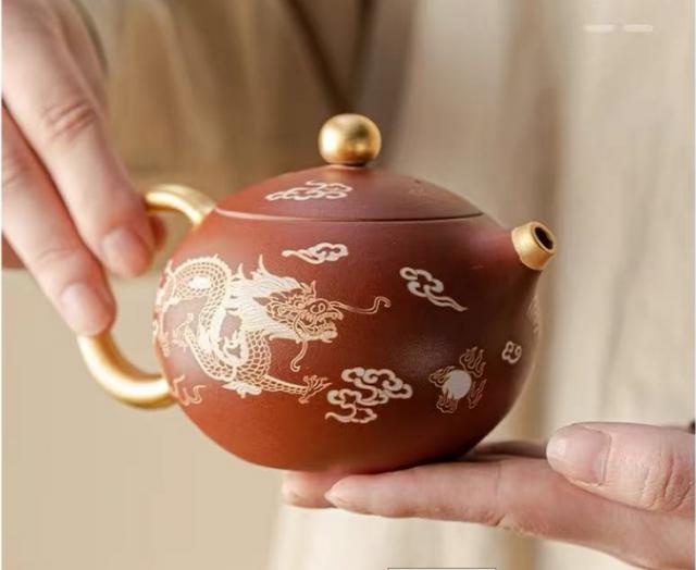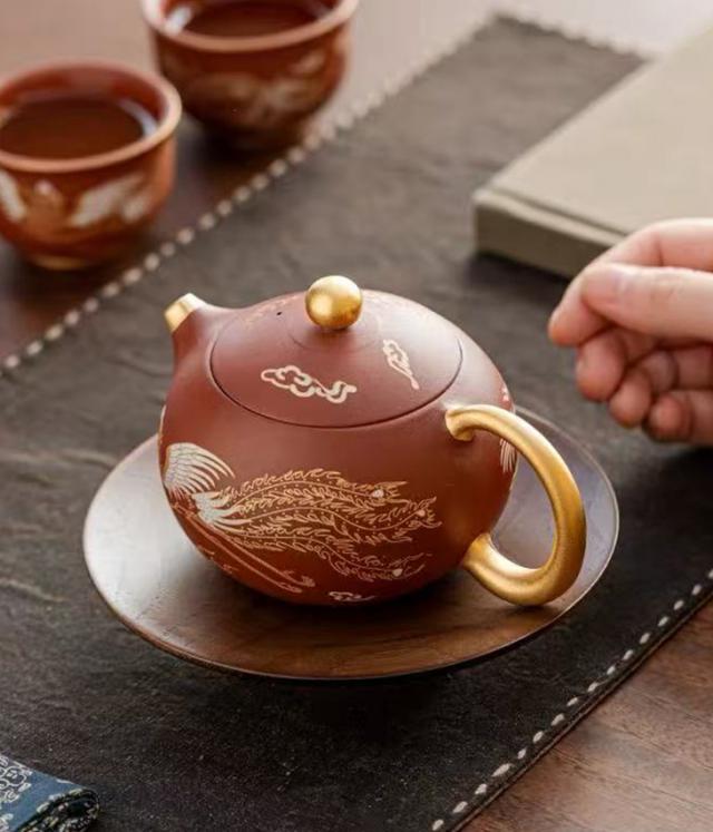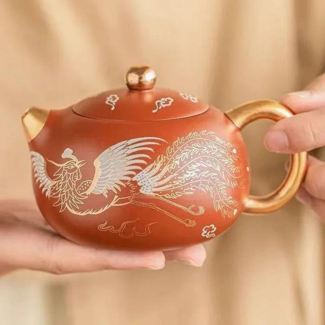 这个西施壶太神奇了,足金手绘龙凤呈祥,倾茶瞬间如凤鸣!