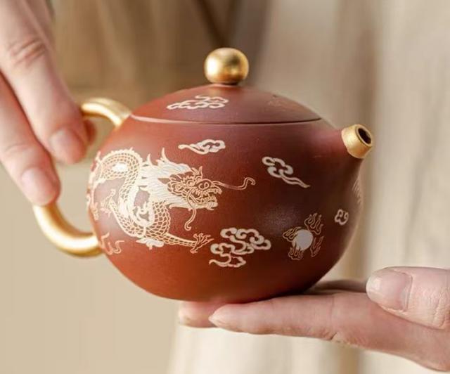 小品壶比较常见,用真金装饰的著名紫砂壶并不常见。