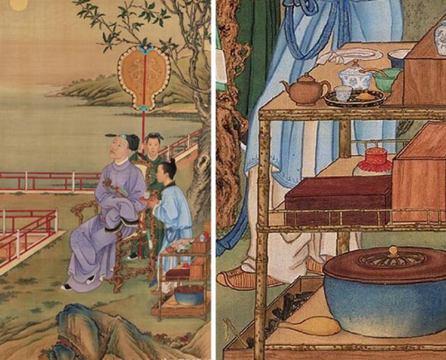 注意:在《乾隆行乐图》中,有一把紫砂朱泥小壶,是乾隆的御茶壶。