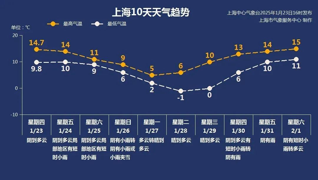 从周日到下周一,由于冷空气的影响,有一个大风降温降水的过程。周日全天气温在6~9℃之间,下着小雨,可能会有小雨夹雪,体验潮湿;下周一,天气晴朗,2~5℃,转为晴冷;下周二,全天气温将降至零下1℃至6℃,届时将在同一个城市冷冻。