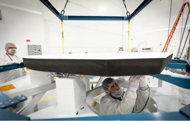 通过计算,科学家们只隐藏在保护罩后面的环境温度, 30 ℃,可以保护仪器设备免受日冕高温的影响。碳复合保护罩由碳复合泡沫和碳板制成,涂有白色陶瓷漆,可以反射尽可能多的热量。