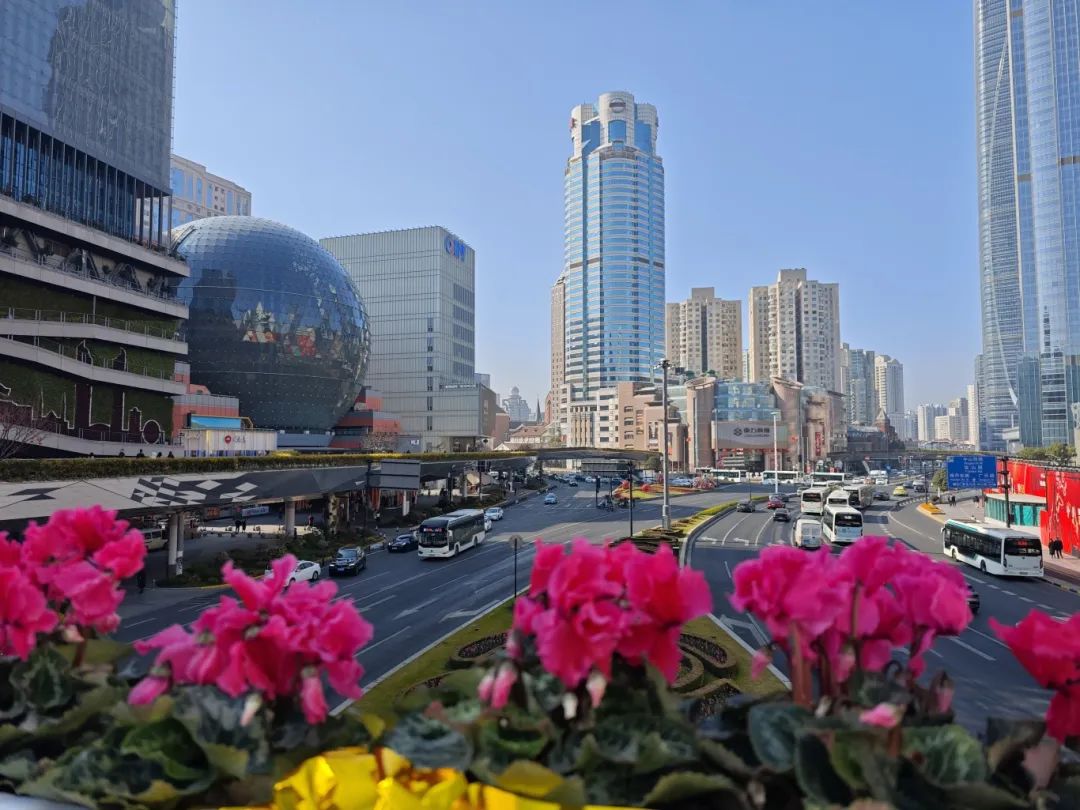 郁金香在沿街的花箱里含苞待放,道路中央的霹雳石竹尽情绽放。人行天桥被布置成一条“花路”。仙客来、郁金香、康乃馨、雏菊等红橙花被排除在外,充满了春天。据了解,为了迎接即将到来的春节,区绿容局在徐家汇区、衡山路沿线、肇嘉邈路沿线、上海南站等地区布置了节日气氛,包括徐家汇天桥走廊摆花、绿地挂灯笼、中国结等其他饰品,并布置了道路沿线的花箱,选择仙客来、郁金香、霹雳石竹、茶梅、杜鹃花等花卉品种,营造出浓厚的过年氛围。