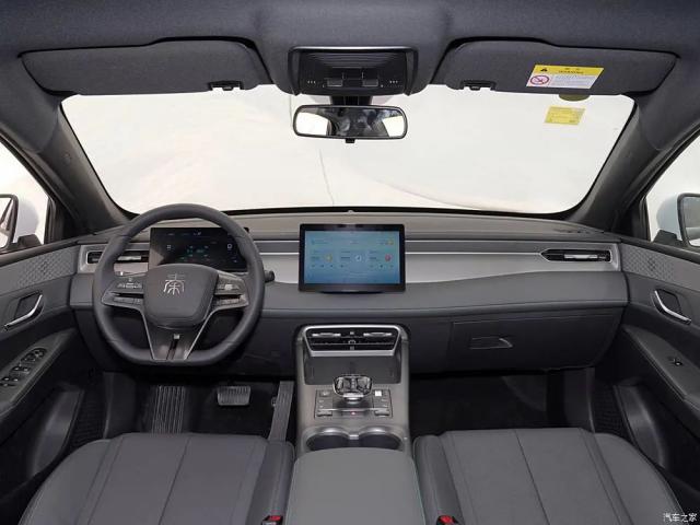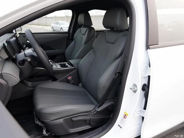 内饰也采用了最新的简约风格。车看起来精致多了,布局也比较整齐。中控台面有设计感,精致感比这款大大提升。因为入门级车型,中控面板的尺寸相当小,方向盘是秦 L DM-i 同样款式,物理按键集中在排档周围,主要是驾驶相关按钮。入门级车型前排为手动调节座椅。