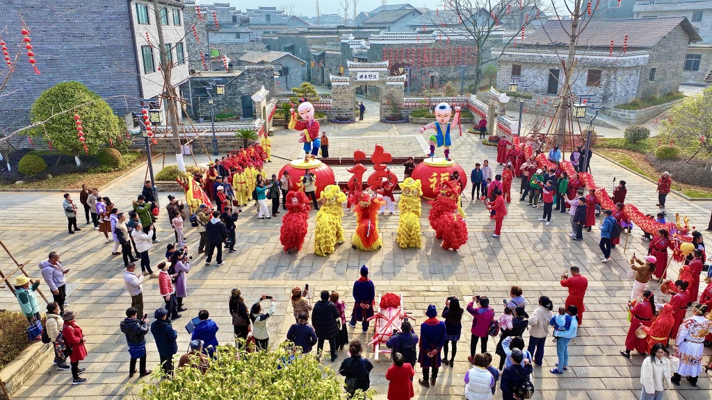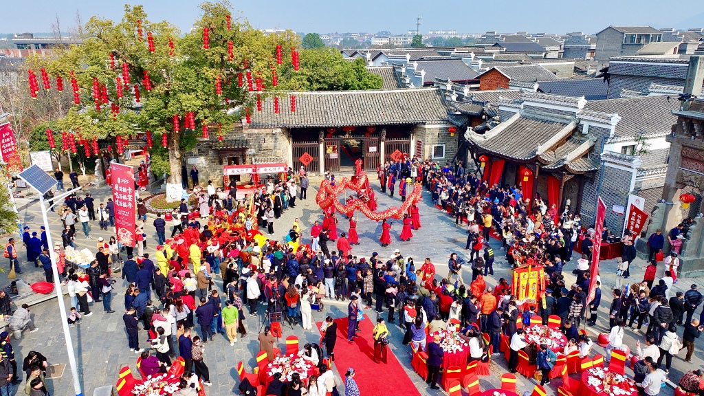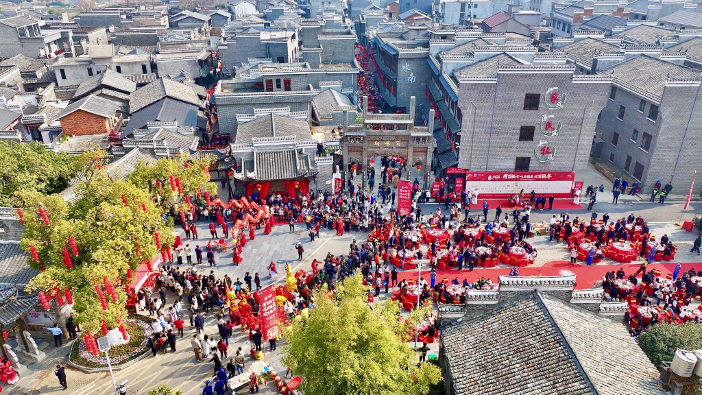 江西安义古村年味十足:千名游客共享百福宴,共度南方小年。