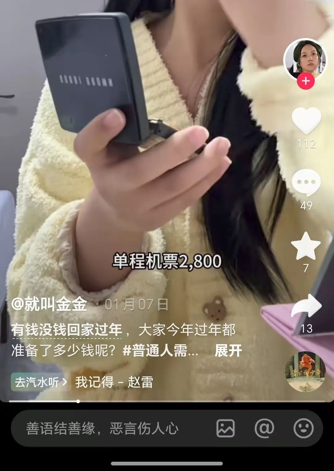 视频中,她坦言:“虽然古语有云,春节期间有钱没钱都要回家,但真正上班后才发现口袋里没有88000,春节期间也不好意思回家。”