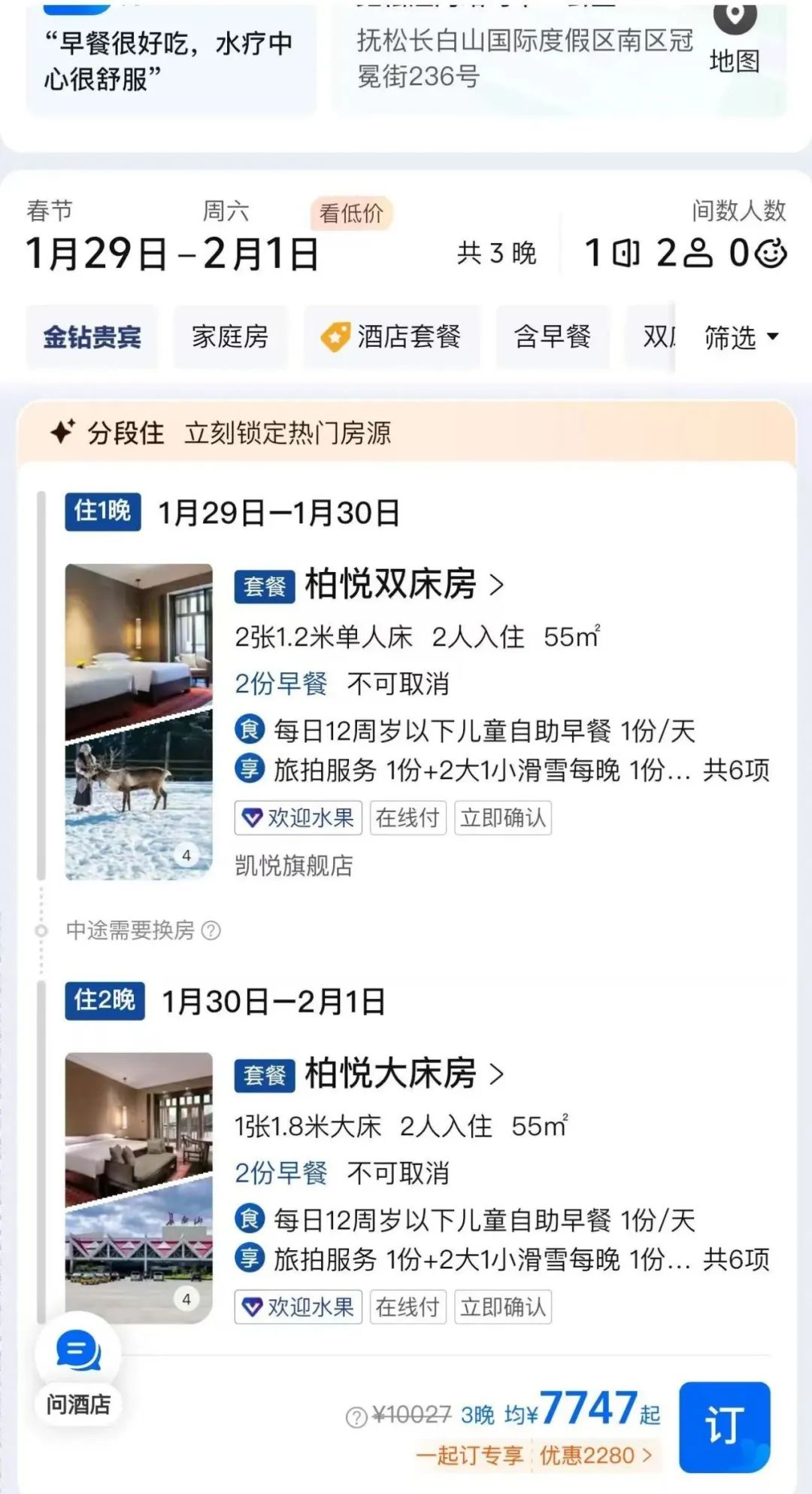 “我们提前一周预订了。老实说,1000元很便宜。我们住在吉林长白山的一家著名连锁酒店每晚2500元,在延吉民俗园订购的民宿每晚2000元。”