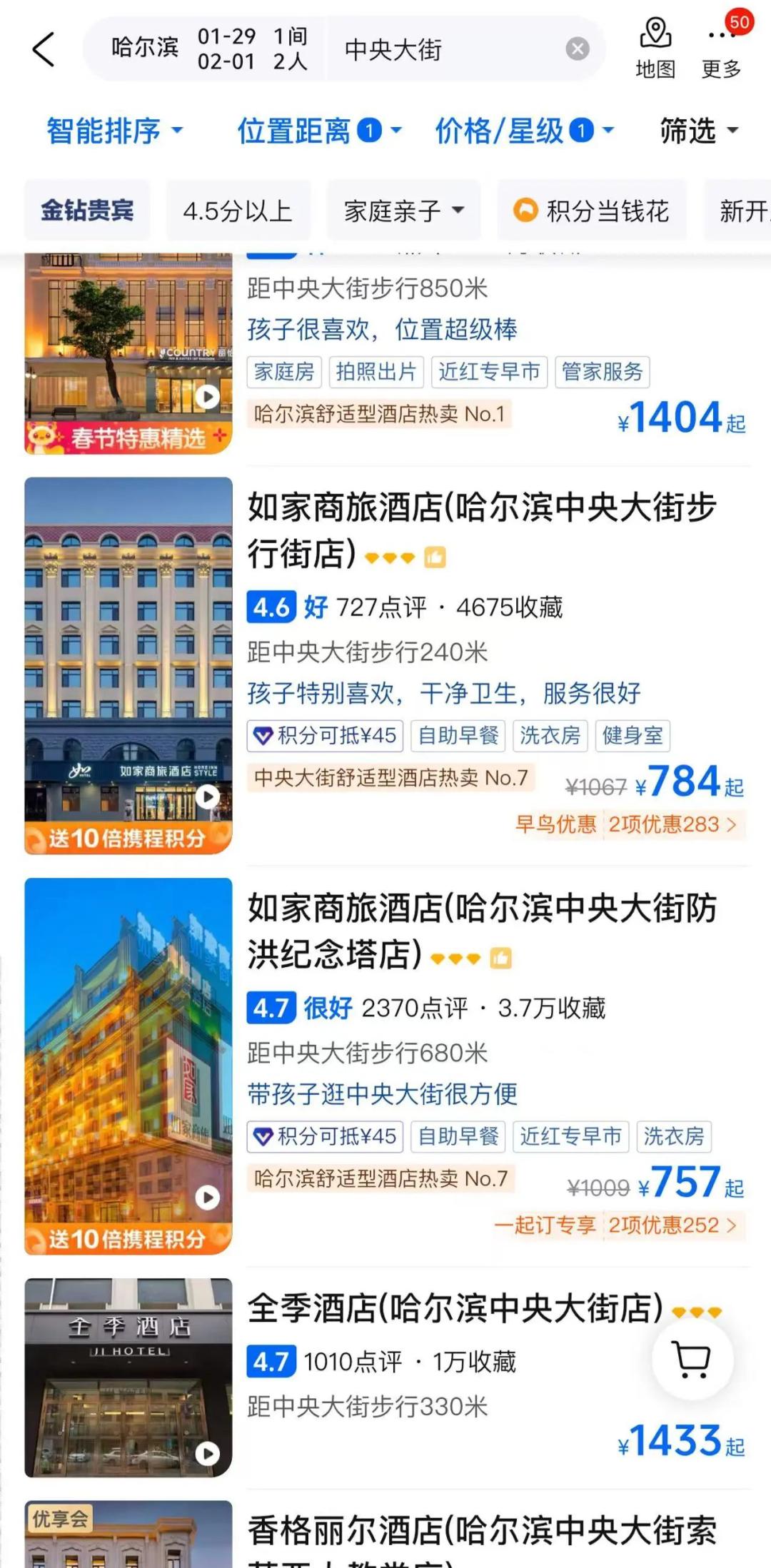 这几天郝嘉在携程、去哪儿、飞猪等平台查询哈尔滨酒店的价格时,已经看不到太离谱的定价了。