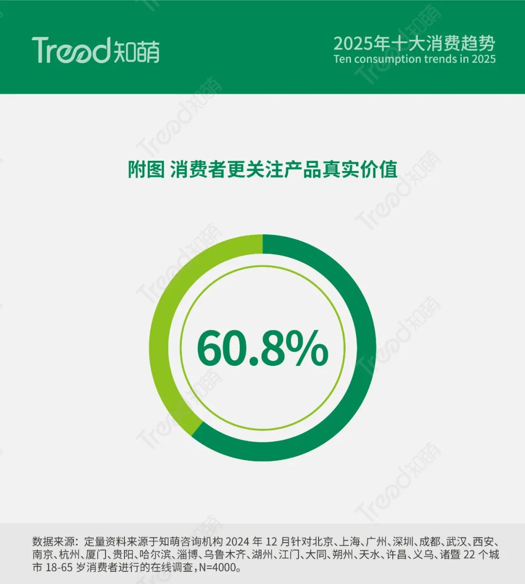 消费者对产品的消费行为越来越重视商品的真实价值,知萌趋势调查显示,60.8%的消费者关注产品的真实价值。产品的具体功效和科学论证也变得越来越重要,尤其是护肤品、保健品等具体产品类别,其功能性和实用性逐渐成为驱动消费者购买行为的重要因素。