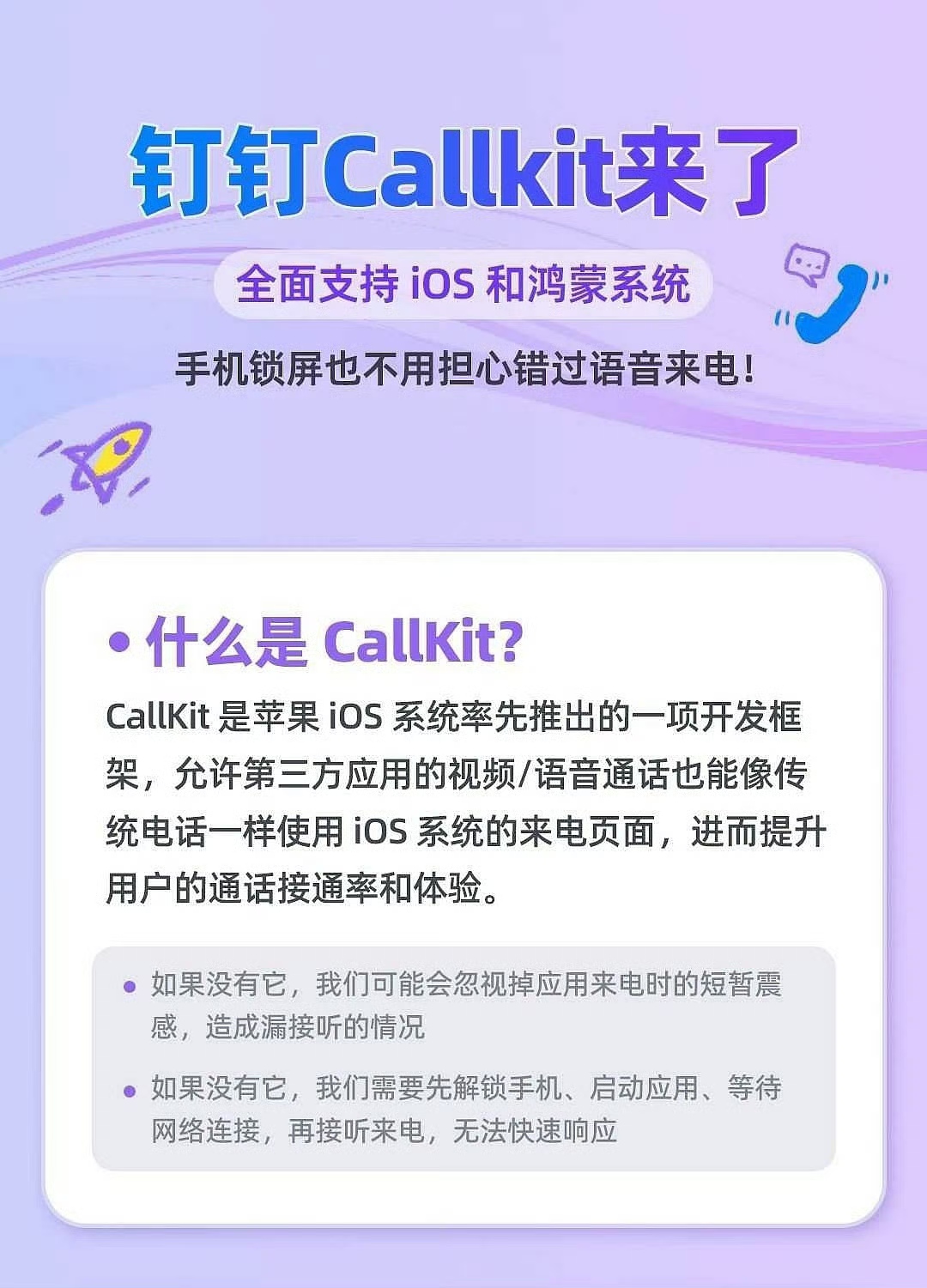 现在,在iOS端,Skype、Line、微信等即时通讯工具已经基本支持Callkit,而鸿蒙系统端则相对较少,但微信已经计划推广接入,钉钉已经正式宣布支持。