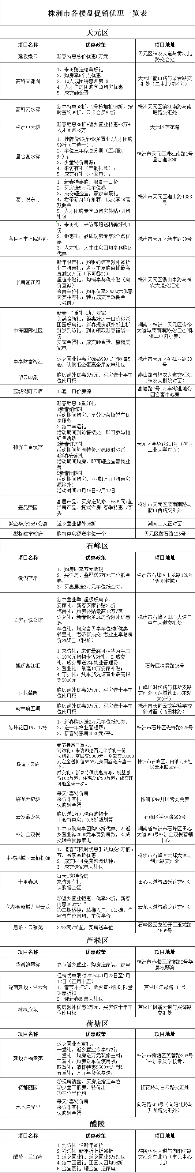 在湖南省株洲市,当地组织了多家房地产企业和房地产企业,并在春节期间推出了购房优惠政策措施,如春节折扣85%、特价房、送车位、送万元购物卡、送一年物业费等。
