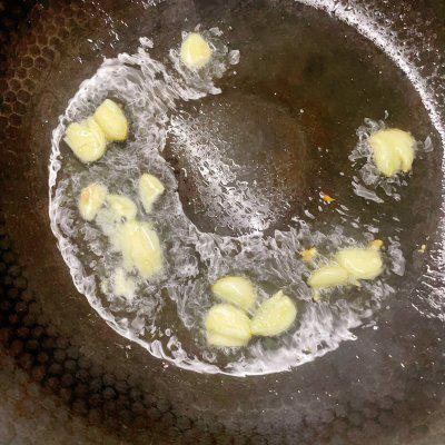 5、锅内加热后,加入金龙鱼外婆乡小榨菜籽油,蒜末