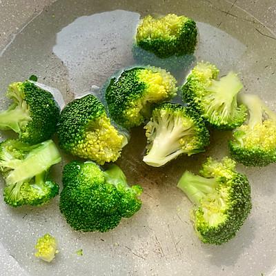 3、将西蓝花切成小块,加入适量的盐,用油焯水。