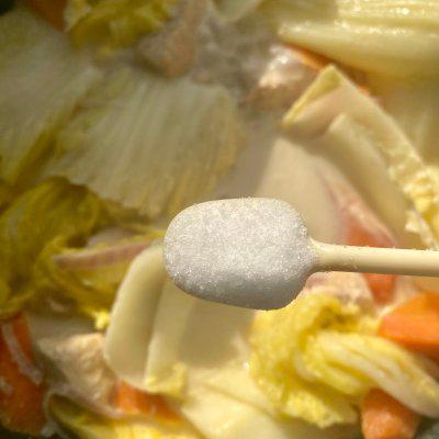 9、加入适量的盐,调味黑胡椒,煮至白菜胡萝卜成熟。