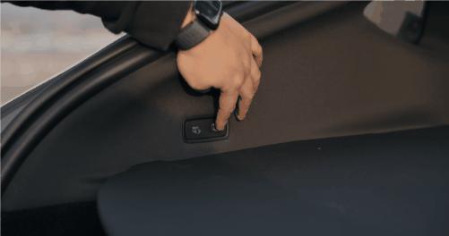 与此同时,后备箱内,也换成了电调放倒按钮,可以实现悬停,如果前排和后排发生矛盾,前排将自动避开。
