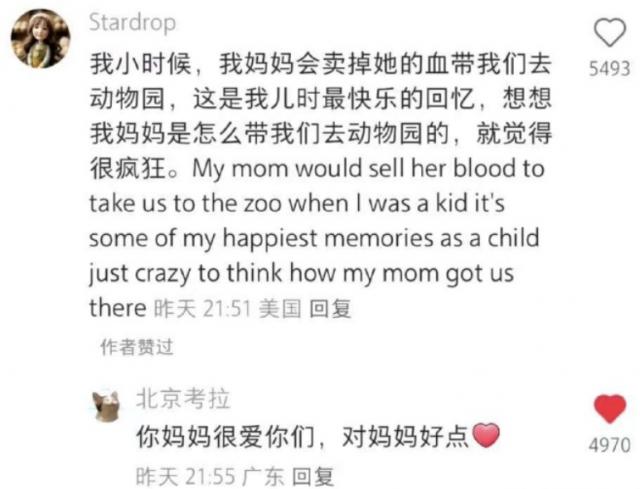 想想美国朋友讲的故事——“小时候妈妈用卖血的钱带了一个幼儿园,这是小时候最幸福的回忆。”“我最好的朋友请喝咖啡。当我付账时,我说我姐姐有钱,卖血赚钱……”这些故事似乎相当“温暖”。
