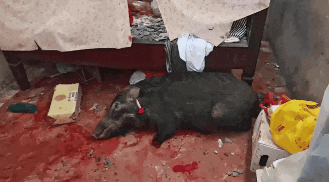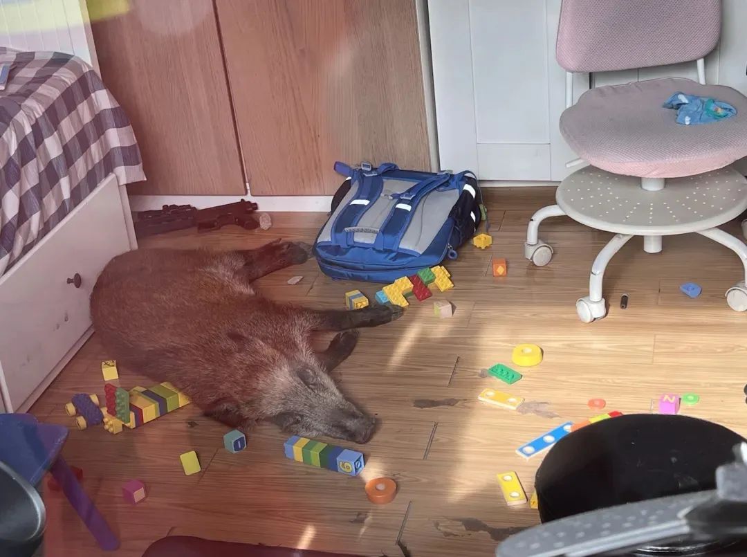 2024年10月,北京门头沟一居民家中,闯入一头重约50斤的负伤山猪,消防队员迅速赶到,将其制服。