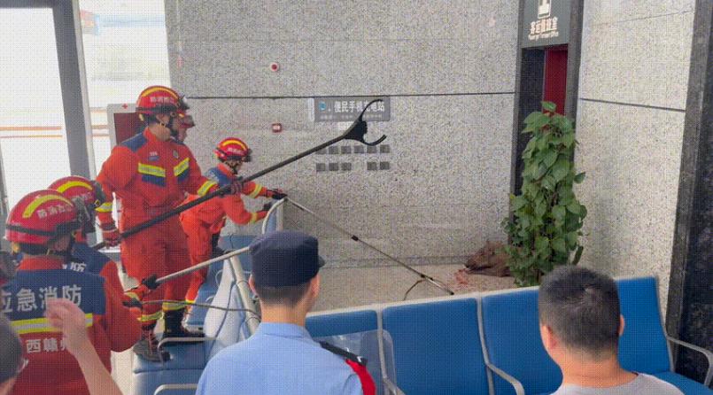 2024年8月,江西赣州,山猪闯入高铁站,消防队员为了防止野猪伤人,紧急赶到将其赶走。