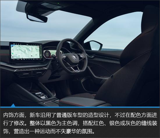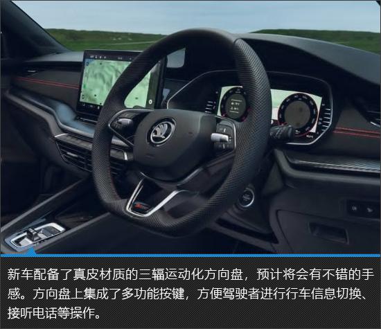 Octavia vRS 内饰也很抢眼。新车配有三辐运动方向盘,皮革覆盖,预计会有很好的触感。同时,运动座椅的加入进一步增强了驾驶员的驾驶体验。座椅还具有电动可调腰部支撑和按摩功能,让驾驶员在长途驾驶中保持舒适。
