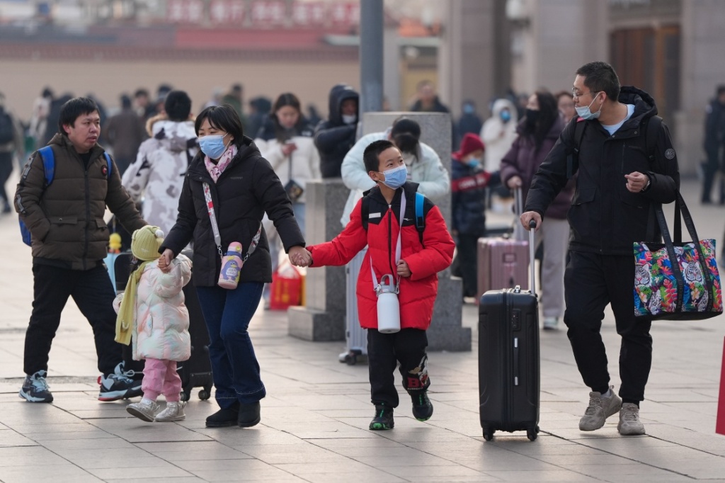 一月二十四日,几名乘客在北京站广场行走。新华社地图