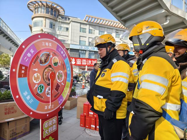 活动在吴淞百联生活中心启动,吴淞街第二、第三街区干部为美团“小哥”赠送春节礼物。“团圆饭大富翁”的游戏是独一无二的。骑手们掷骰子,在棋盘上赢得各种年货礼物。从实用的生活用品到新年吉祥物,每一份奖品都充满了组织者的美好祝愿。