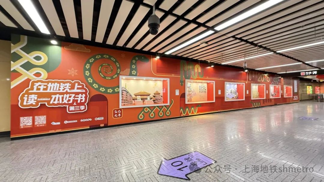 正逢蛇年春节,由上海诗香,IP SHANGHAI、思南读书俱乐部与上海地铁联合发起的第三季《在地铁上读一本好书》近日上线,为广大市民和乘客的地铁出行增添了浓厚的书香气息。喜庆的走廊风景在车站营造了浓厚的新年氛围。