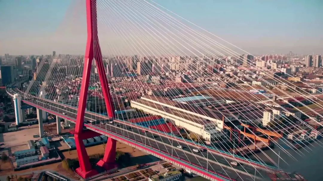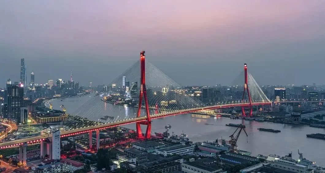 1993年10月23日,杨浦大桥正式通车。杨浦大桥穿越黄浦江,连接上海杨浦区和浦东新区。2018年第一届中国国际进口博览会前夕,杨浦大桥“穿红色衣服”全新亮相,为世界各地的客人展示了一张美丽的城市名片。