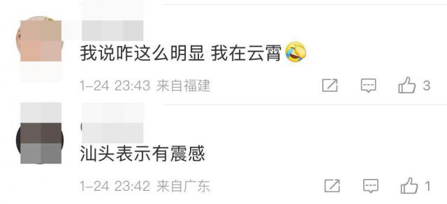 昨晚汕头南澳地区发生3.1级地震,福建网友表示震动。