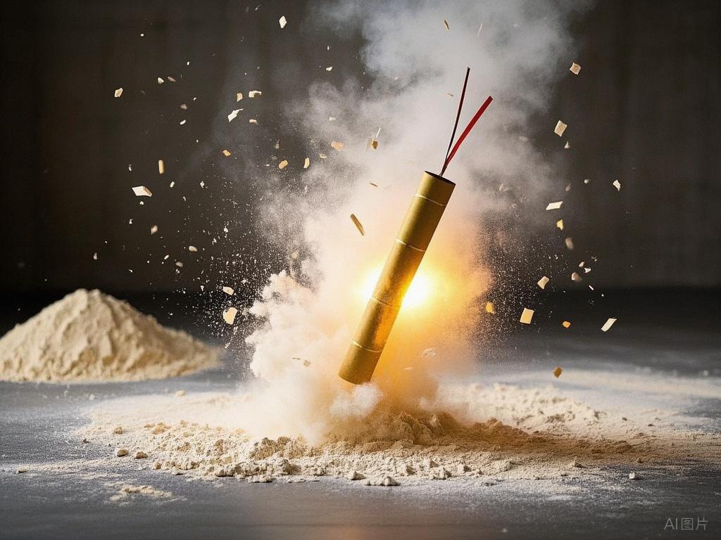 面粉、淀粉、奶粉、玉米粉、铝粉、钛粉、锌粉、棉花、亚麻、聚酯纤维等。都属于容易爆炸的粉尘类型。一旦它们在空气中积累到一定浓度,遇到明火,就可能瞬间变成脾气暴躁、威力大的“粉尘炸弹”!