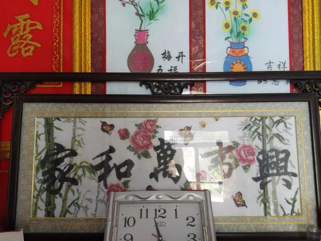 十字绣,中国风 时钟,注意上面的时钟并没有嵌入其中,是真正可以使用的时钟。
