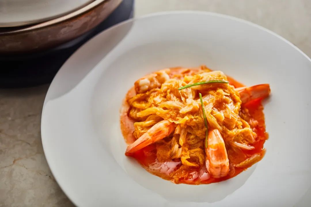 选择野生渤海湾盐田对虾。这种虾以其鲜艳的虾脑和美味的食物而闻名。它是用胶东白菜做的。卷心菜充分吸收了虾的鲜味,比虾还好吃。
