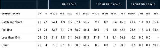 实际上,上述数据最深层次的体现就是保罗乔治的主动出击能力严重下降。在之前的赛季,乔治整体上,他最依赖的个人技术持球跳投。 43.3% 命中率下降到了 39.2%,下降 4.1% %。