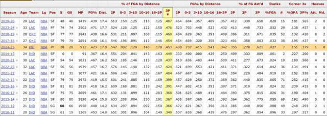 这位改投 76 人以前的 NBA 全明星场均也能拿下。22.6 分 5.2 篮板 3.5 助攻 1.5 断球,投篮命中率 三分命中率47.1% 罚球命中率41.3% 90.7%。但是现在这个赛季每场比赛只能赢 17.0 分 5.8 篮板 4.9 助攻 1.8 断球,投篮命中率 三分命中率42.3% 罚球命中率35.5% 82.4%。各种数据都迎来了大幅下滑!甚至让人感到恐惧和窒息,一个顶级的 NBA 球员们这么快就沦落到这个地步!