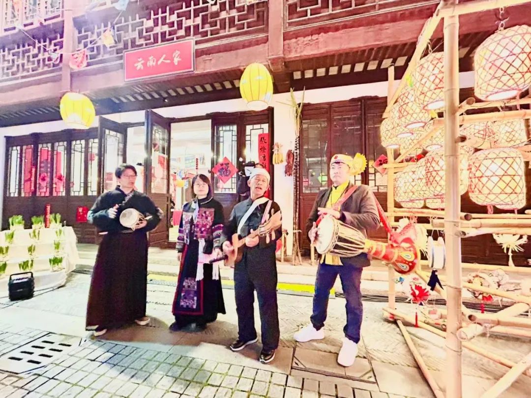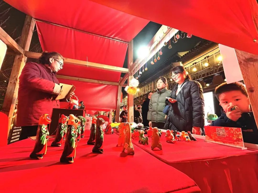 在桃花坞,好运一次又一次。走进桃花坞唐寅故居文化园,一路灯火通明,笙箫锣鼓,游客肩并肩,非常热闹。正在举办的春节非物质文化遗产游园会、全国年味大观园、非物质文化遗产项目现场演出,似乎进入了一个非物质文化遗产“大观园”,为游客提供了一个身临其境的年俗体验空间。