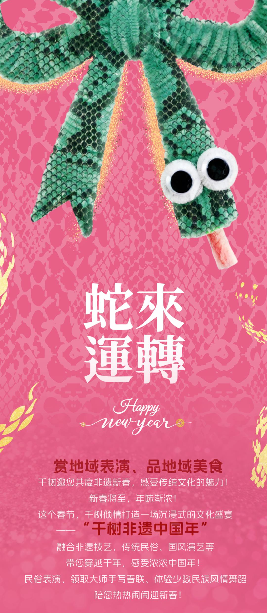 春节来临之际,天安千树将举办“蛇来运行,来自世界各地的财富”的中国非遗年活动,让上海市民足不出沪,感受当地的风土人情、民俗和节日非遗活动,包括上海、四川、广州、新疆、贵州、安徽、湖南等地的新年非遗风俗表演和区域美食体验。