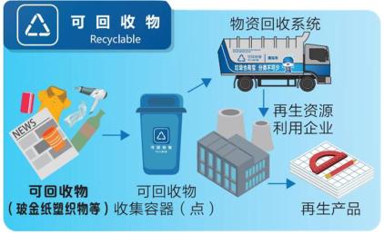 可回收材料主要包括五类:废纸、塑料、玻璃、金属和织物。通过综合处理和回收这些垃圾,可以减少污染,节约资源。