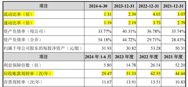 截至 2024 年 6 月 30 当天,曙光集团手握流动资产 6.58 与年初相比,亿元 14.46 亿元大幅下降。短期贷款同期进行 7272.39 与年初相比,万元增加了大约 2000 万元;一年内到期的非流动负债 4.14 与年初相比,亿元增加了约 2.08 一亿元;总流动负债 19.01 流动比例为亿元 流动比率1.31 现金流比例为1.19。 0.055,财务风险上升。