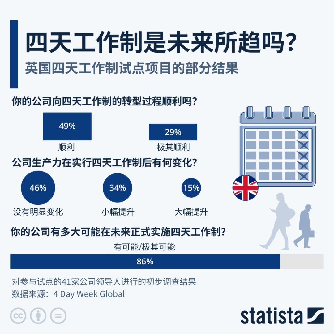 在2022年,英国大多数参与四天工作制试验的企业表示,他们将来可能会实施这一制度。(图片 / statista)