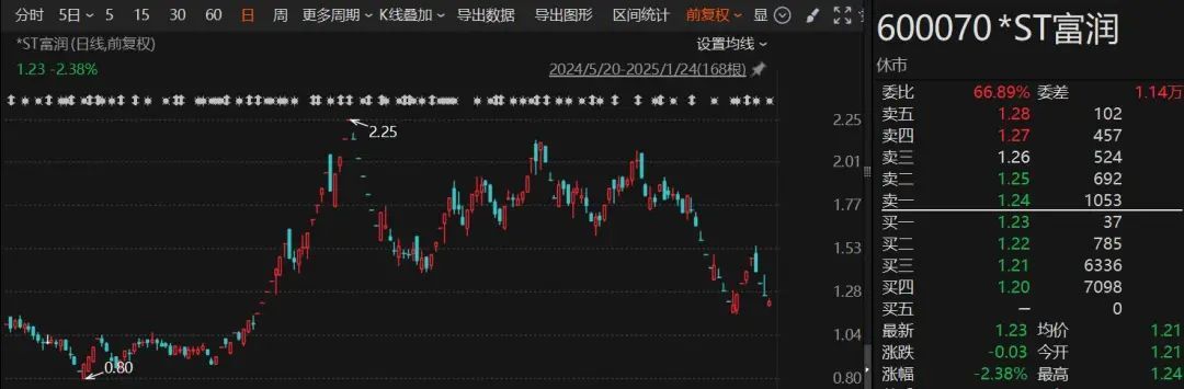 *ST富润表示,业绩预测的数据尚未经会计师事务所审计,最终审计的营业收入能否高于3亿元仍存在不确定性。根据《上海证券交易所股票上市规则》的有关规定,最终经审计扣除与主营业务无关的业务收入后,营业收入低于3亿元,公司将触及财务退市风险,公司股票将在2024年年报披露后终止上市。