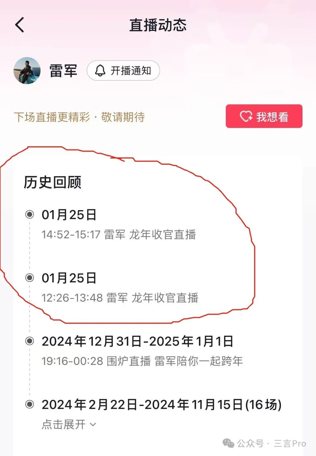 三言科技 一月二十五日消息,今天,雷军龙年收官直播。然而,下午1点48分,雷军的抖音直播间突然被封禁。