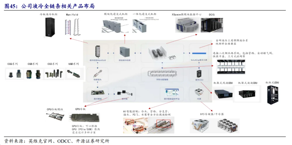 公司是全链液冷开创者,Coolinside全链液冷解决方案于2021年实现大规模商业化,从服务器侧冷板、SoluKing数据中心长效液冷工质和管道,到机柜侧快插接头,Manifold、Tank,再次到机柜侧外部CDU,以及一次侧冷源等,完成全链全产品覆盖。