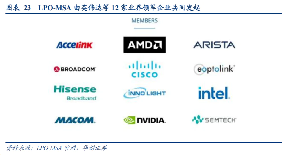 LPO商品的深度布局有望应用于短距离互联场景。LPO,Linearr的英语全称-drivePluggableOptics,即可插拔光模块的线性驱动。在LPO中取消负责数据还原的DSP(数字信号处理)/LPO与传统光模块的关键区别CDR(时钟数据修复)芯片将这些功能集成到设备侧的交换芯片中,可以将功耗降低50%左右。LPO凭借其成本和功耗优势,适用于特定的短距离应用领域,如机柜连接。LPO产业生态不断成熟,各大厂商积极推进LPO布局。