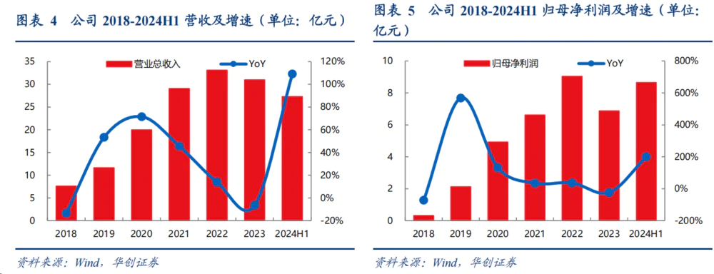 近几年来,公司市场发展迅速,收入实现快速增长。得益于AI需求,2024H1海外数通光模块市场景气度较高,公司恢复增长,实现营业收入27.28亿元,同比增长109.1%,实现归母净利润8.65亿元,同比增长200.0%。